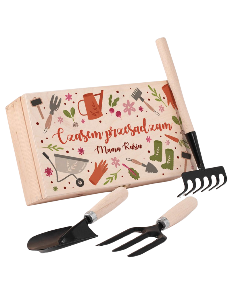 Zestaw ogrodniczy dla mamy „CZASEM PRZESADZAM” – w personalizowanej skrzynce